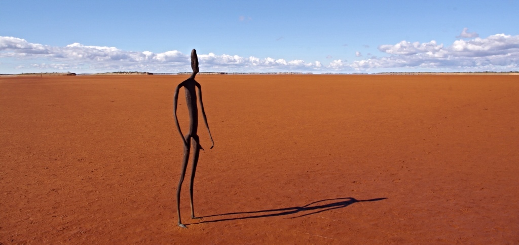 We woke up to heavy rain and it continued to rain and rain. Our plan was to drive up to Lake Ballard to run through the sculptures, known as Inside Australia, created by Antony Gormley, a British sculptor. If the rain was falling in the north we may not be able to access the lake, because it is located 50 kms down an unsealed dirt track. Our first stop this morning was the visitor information center to check road conditions.